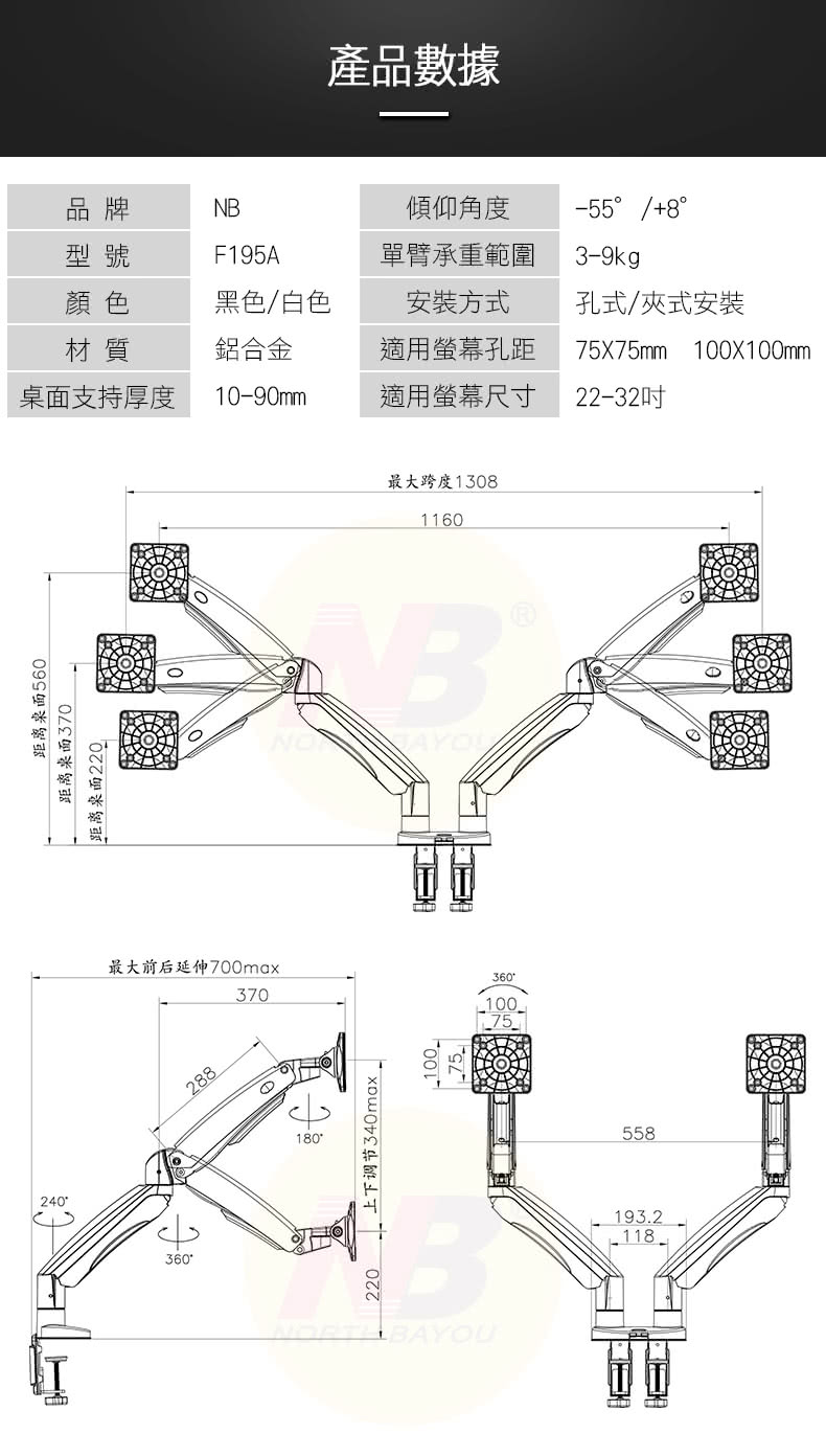 【NB】2232吋桌上型氣壓式雙液晶螢幕架(F195A)的朋友們參考